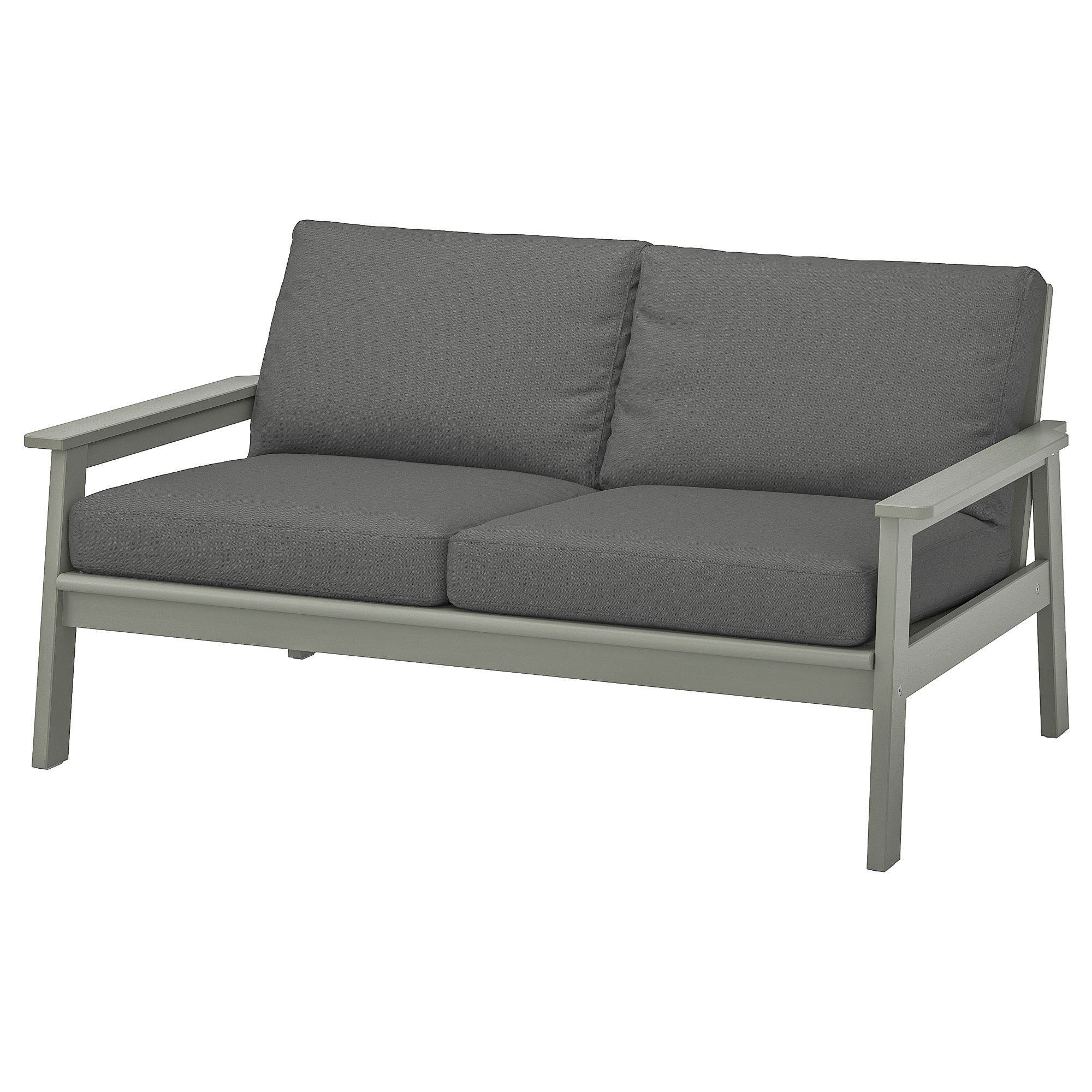 Relax in this 2-seat garden sofa, designed like old-time handicraft with generous proportions in durable hardwood. Comfy dark grey cushions that are water-repellent make it easier to enjoy outdoor living.