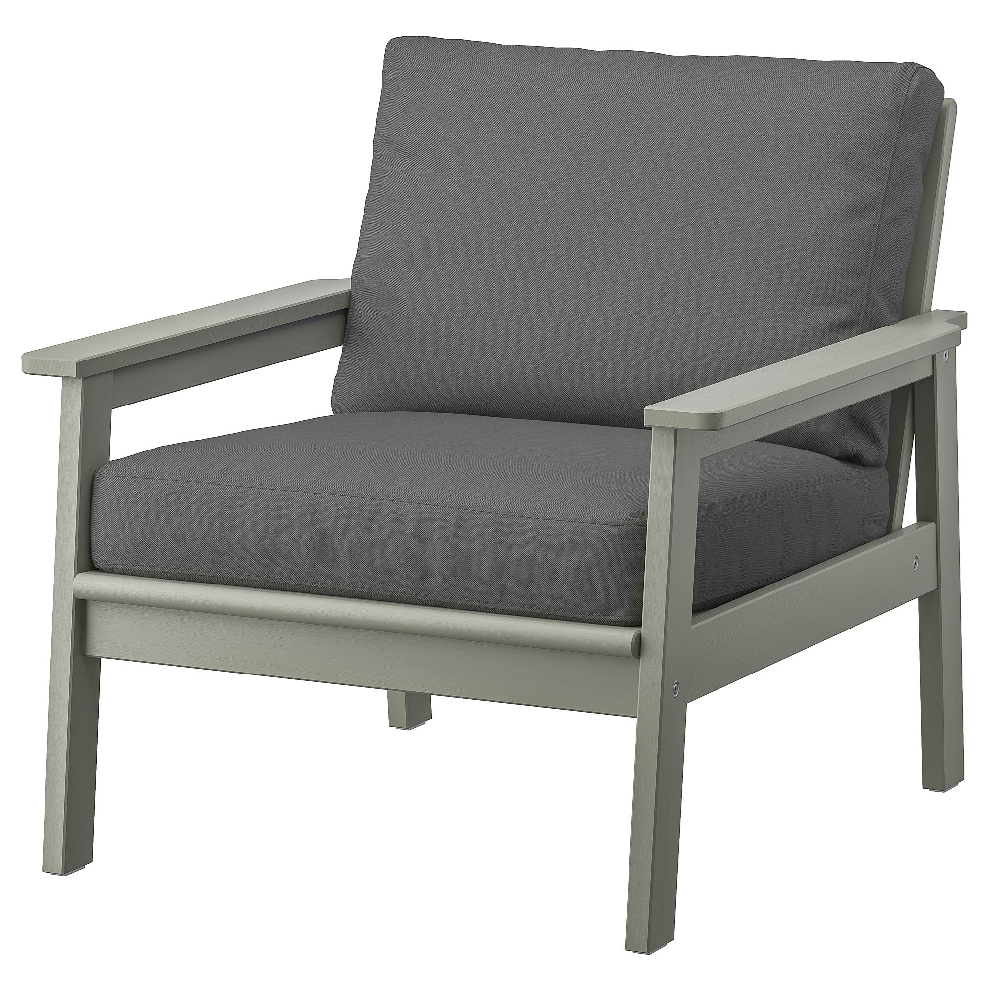 The grey-coloured surface in three layers makes the armchair even more durable for outdoor use and also makes it blend into the outdoor surroundings.