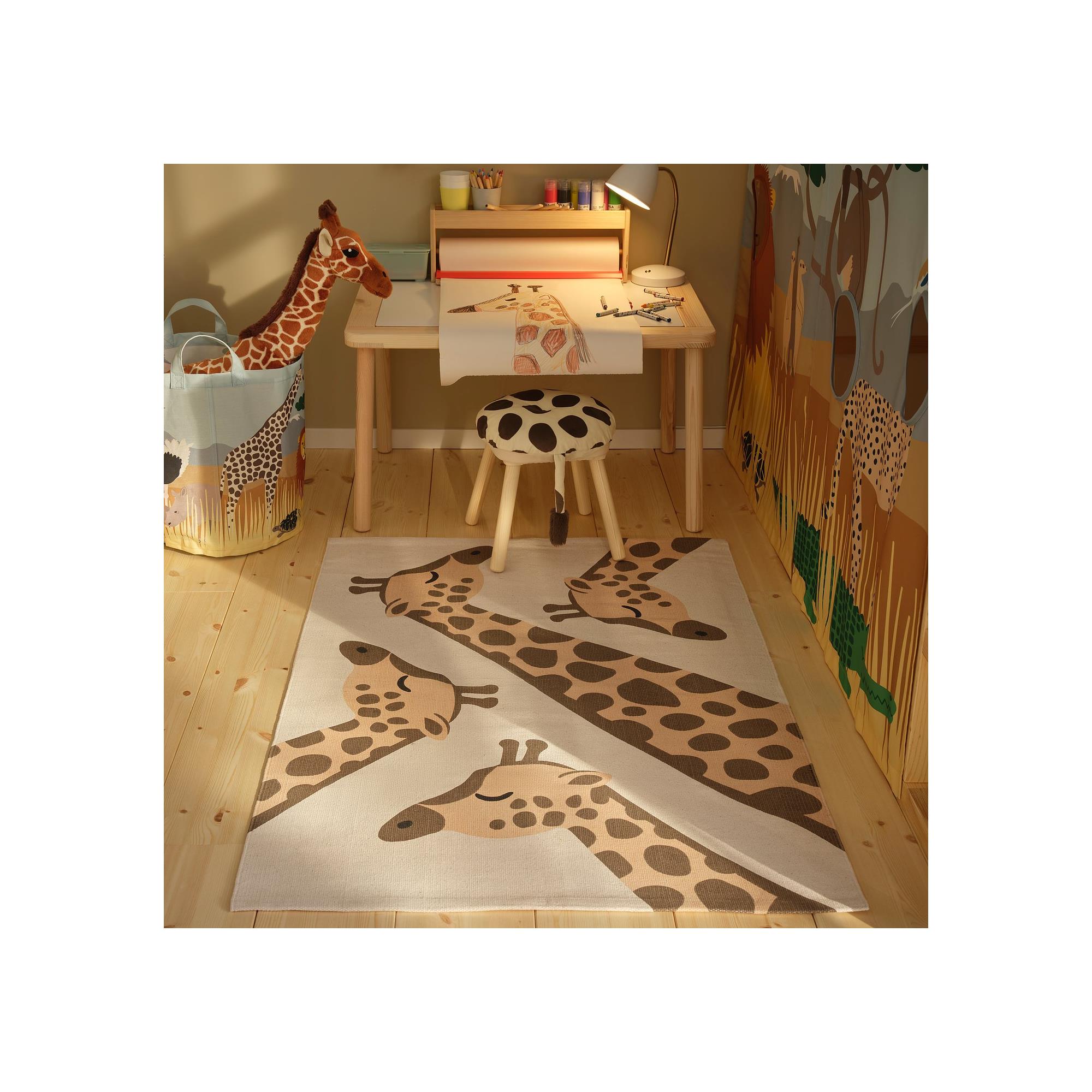 On this flatwoven rug, the amazing giraffe with its long neck greets you from different directions. And keep an eye out for the giraffe on other items in the savannah-inspired SANDLÖPARE collection. Slip-reducing coating underneath.