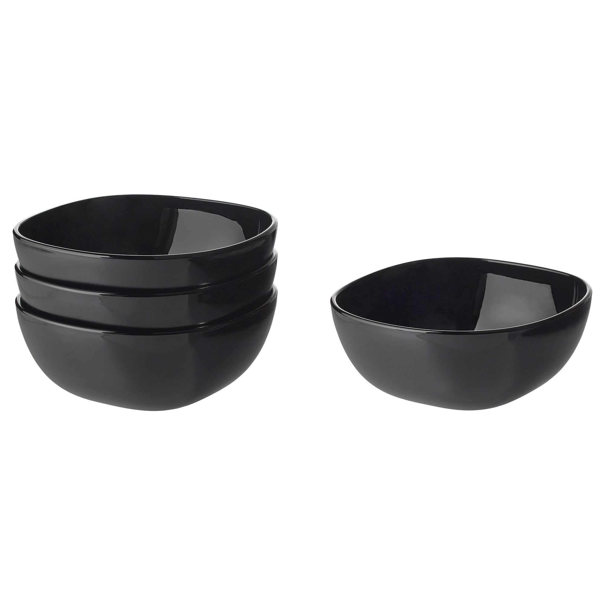BACKIG glass bowl set, black, 14 cm, 4 pack