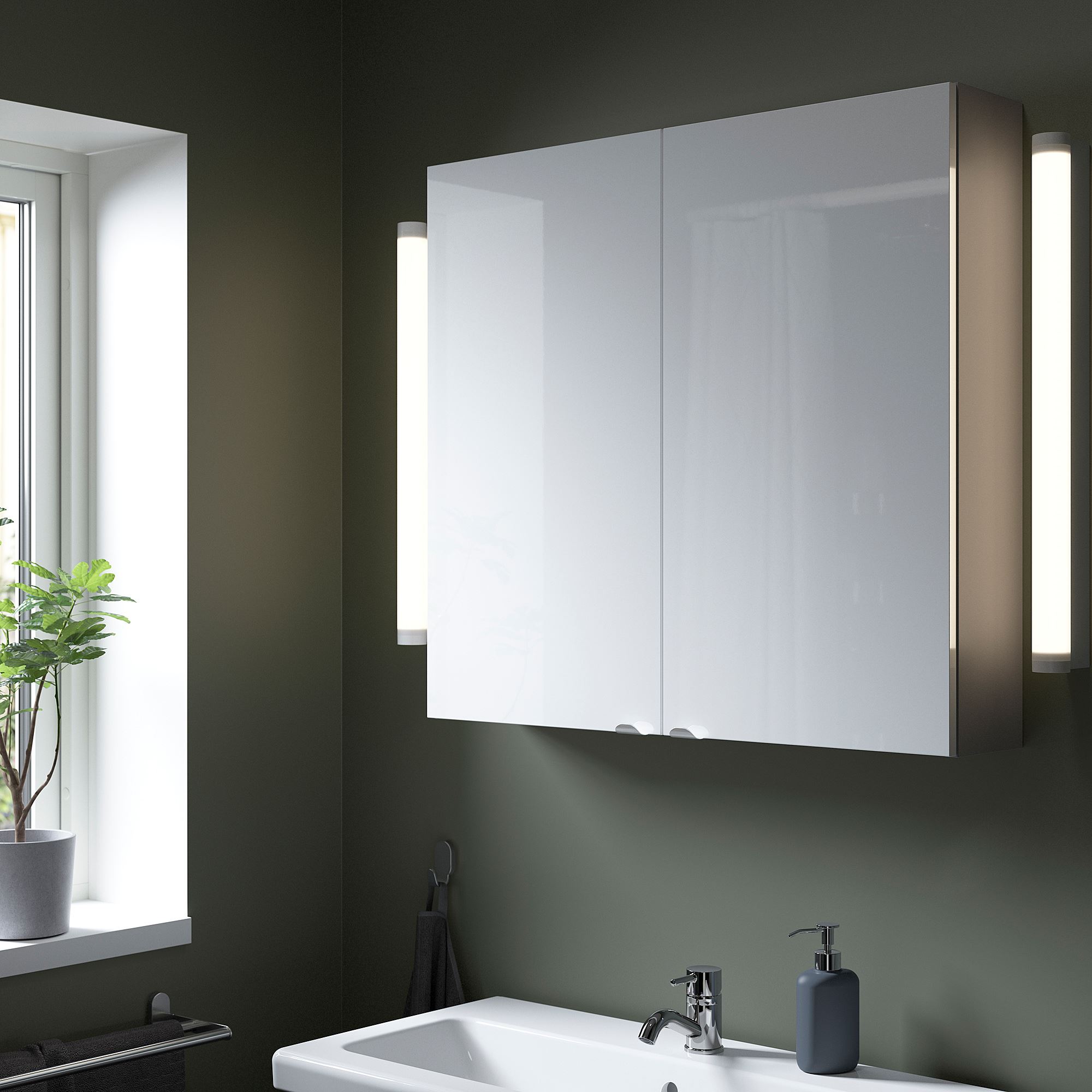 ENHET bathroom wall cabinet, gray-high gloss white, 80x17x75 cm, with 2 doors