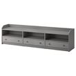 Use throughout the home, on its own or with other furniture in the HAUGA series. This extra-wide TV bench has 3 drawers where you can store accessories – and cable management to keep all cables tidy.