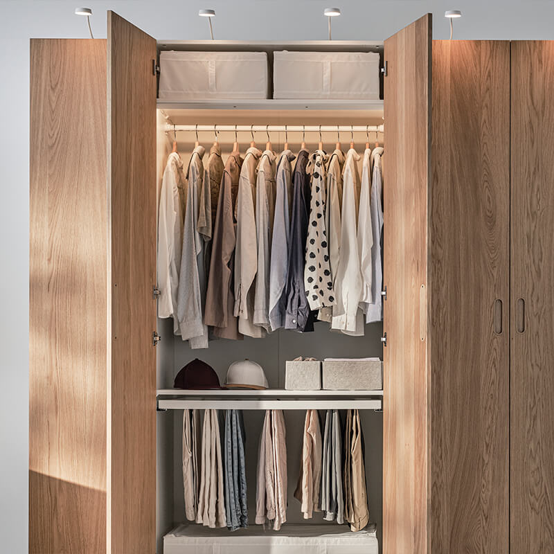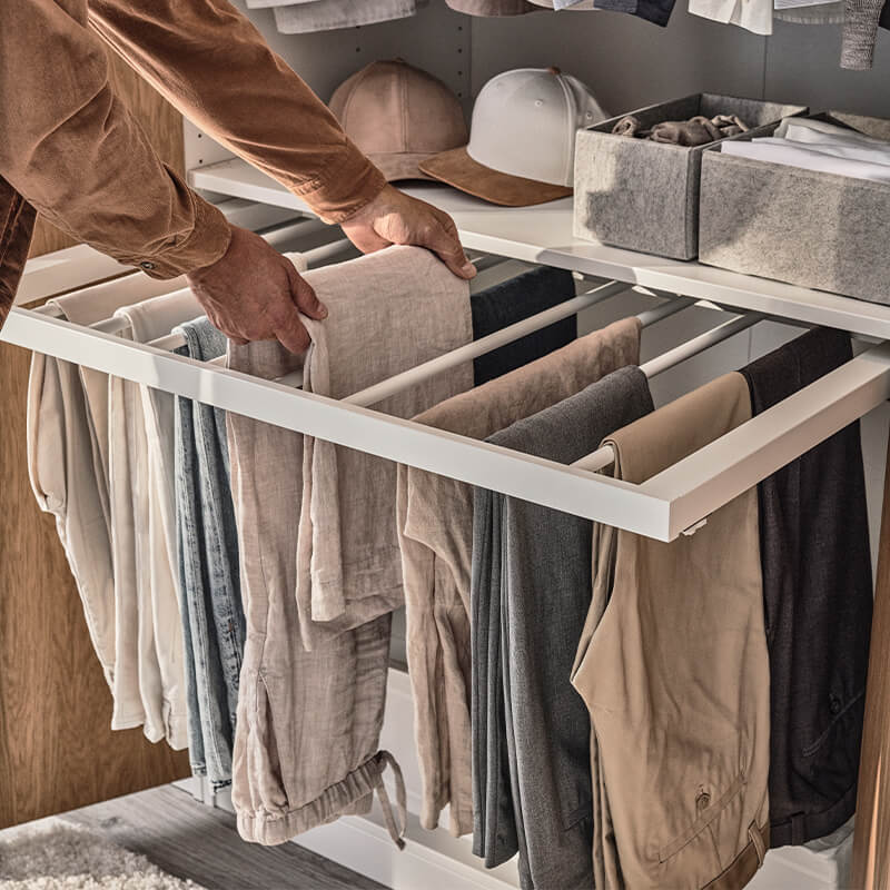 You can easily see and reach your trousers since the trouser hanger pulls out.