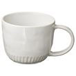 This mug is made of matte white-glazed stoneware and has an irregular finish with a crafted feel.