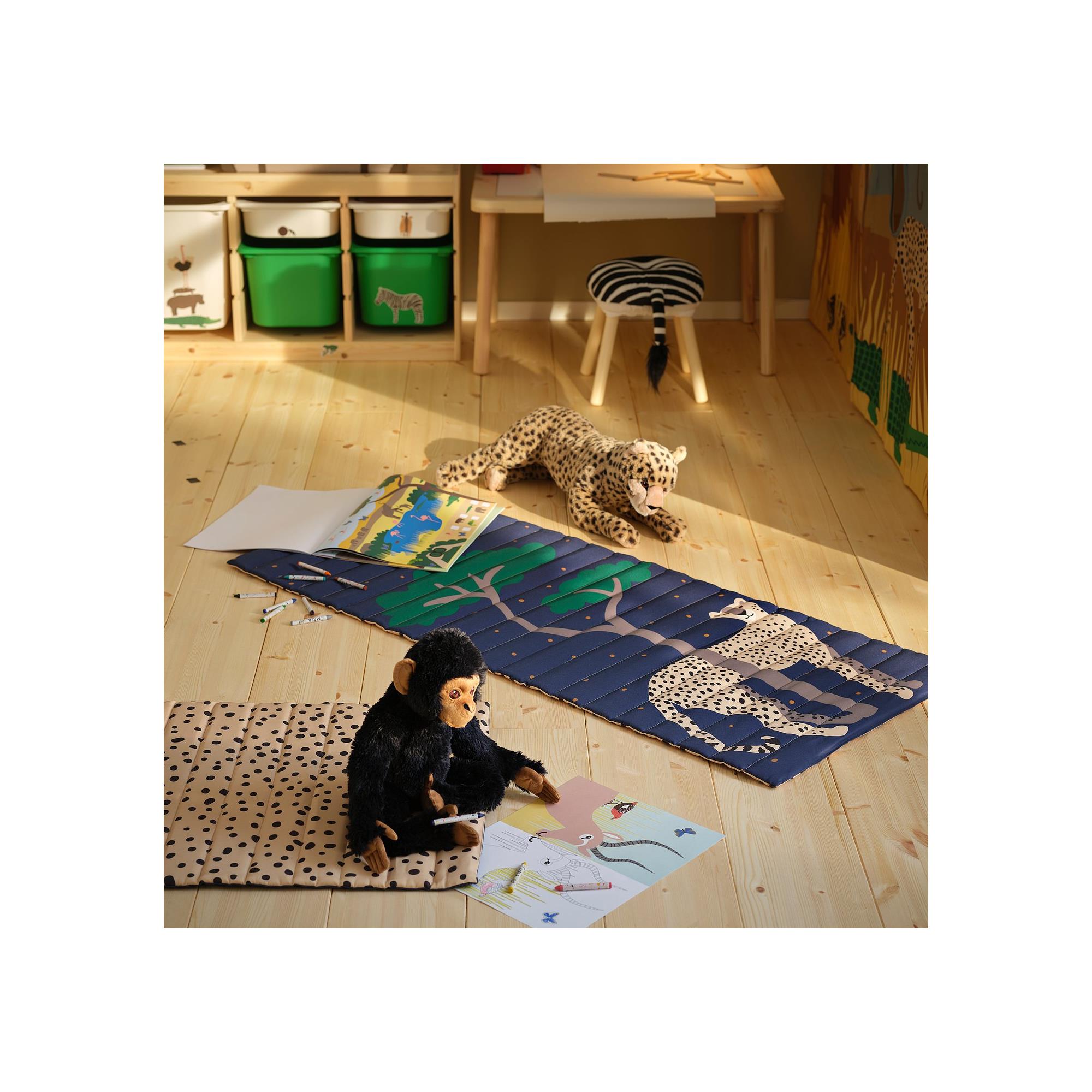 The SANDLÖPARE collection lets us explore the open plains of the African savannah while getting to know some of the fascinating animals that live here. Through colourful and detailed illustrations by Anna Lagerström, the savannah comes to life on bed textiles, storage and accessories. With lifelike soft toys and educational materials, the stories of the animals can become the starting point for a new game or a new discovery.