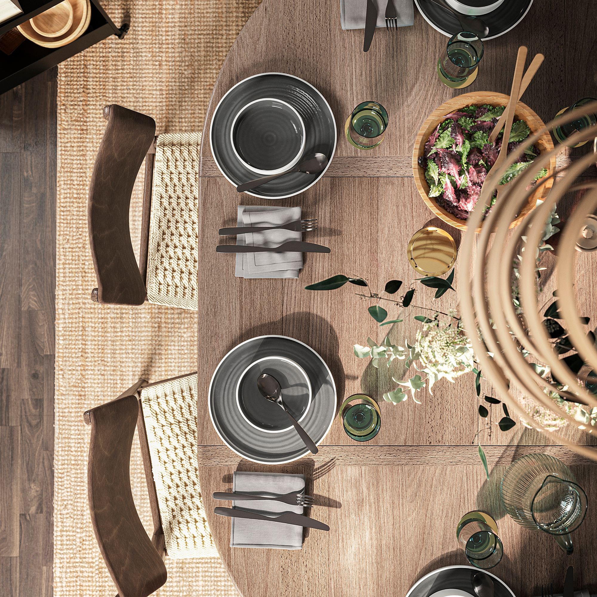 Table top:Particleboard, Solid beech, Adhesive, Thick beech veneer, Stain, Tinted clear acrylic lacquer