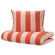 Kırmızı ve pembe renkli klasik çizgiler, çocuk odasında uyumlu bir atmosfer yaratır. Yüksek iplik sayısına sahip yumuşak pamuk, %80'i OCS sertifikalı organik ve %20'si geri dönüştürülmüş olup, rahat ve davetkar bir his verir.