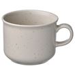 Açık bej, yarı mat yüzeyli, canlı ve özgün bir ifade yaratan düzensiz beneklere sahip rustik çömlek.