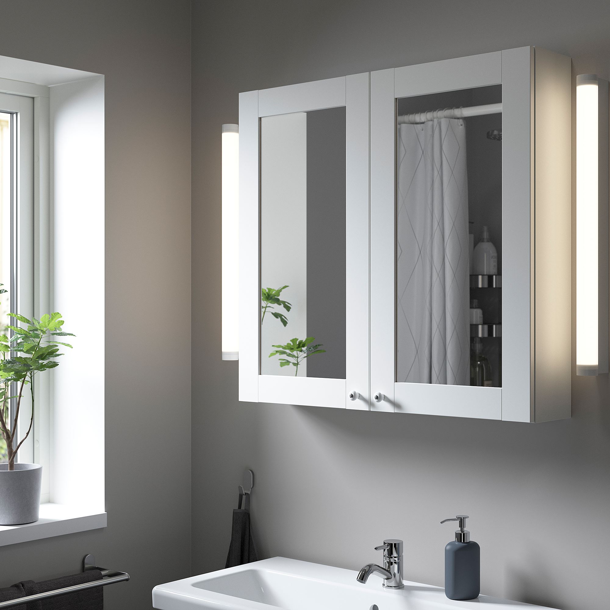 ENHET serisi, banyoda veya çamaşır yıkadığınız alanda taze bir başlangıç yapmayı kolaylaştırır. Bu duvar dolabı, temel ihtiyaçlarınızın göz hizasında görünmesini sağlar ve beyaz çerçeveli aynalı kapaklar, odayı daha büyük ve daha parlak hissettirir.