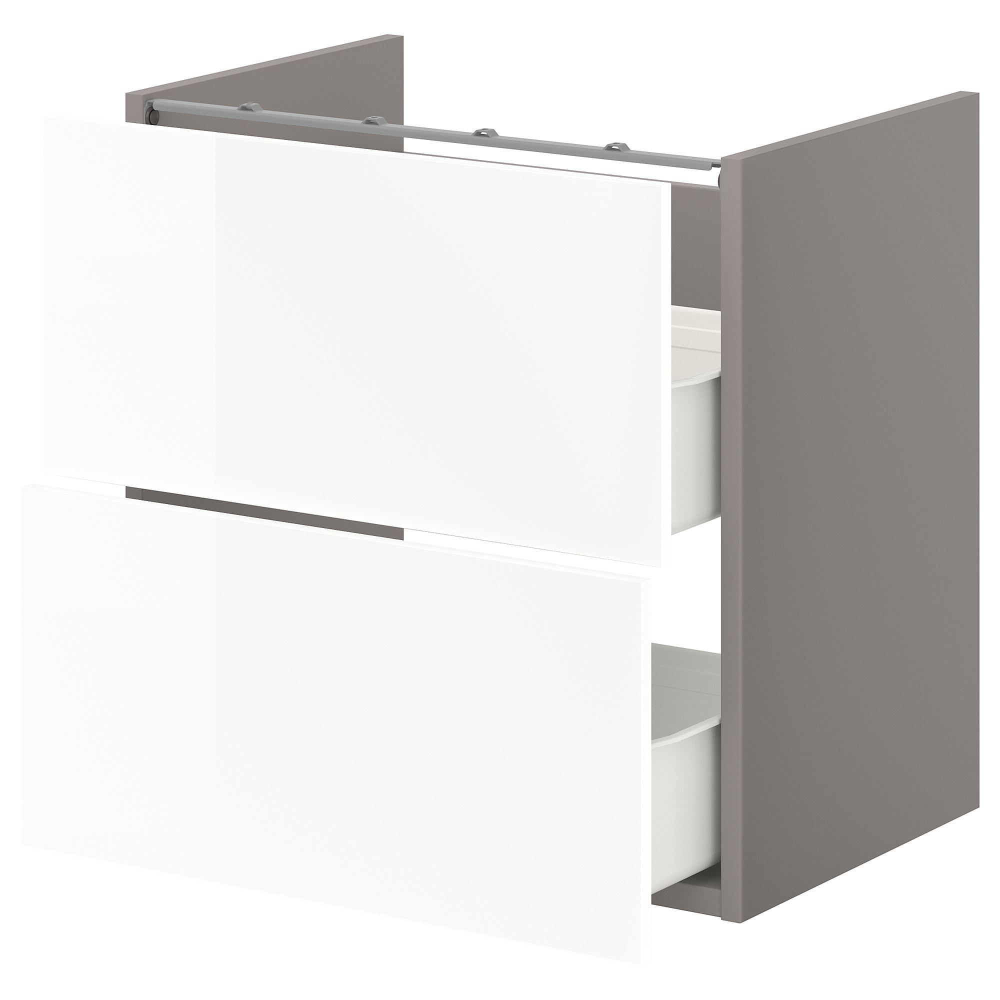 ENHET lavabo dolabı, gri-parlak cila beyaz, 60x42x60 cm, 2 çekmeceli
