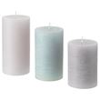 İçerisindekiler: 1 blok mum (yükseklik 10 cm, yanma süresi 30 saat), 1 blok mum (yükseklik 12 cm, yanma süresi 35 saat) ve 1 blok mum (yükseklik 14 cm, yanma süresi 40 saat). 3 mumun çapı 7 cm'dir.