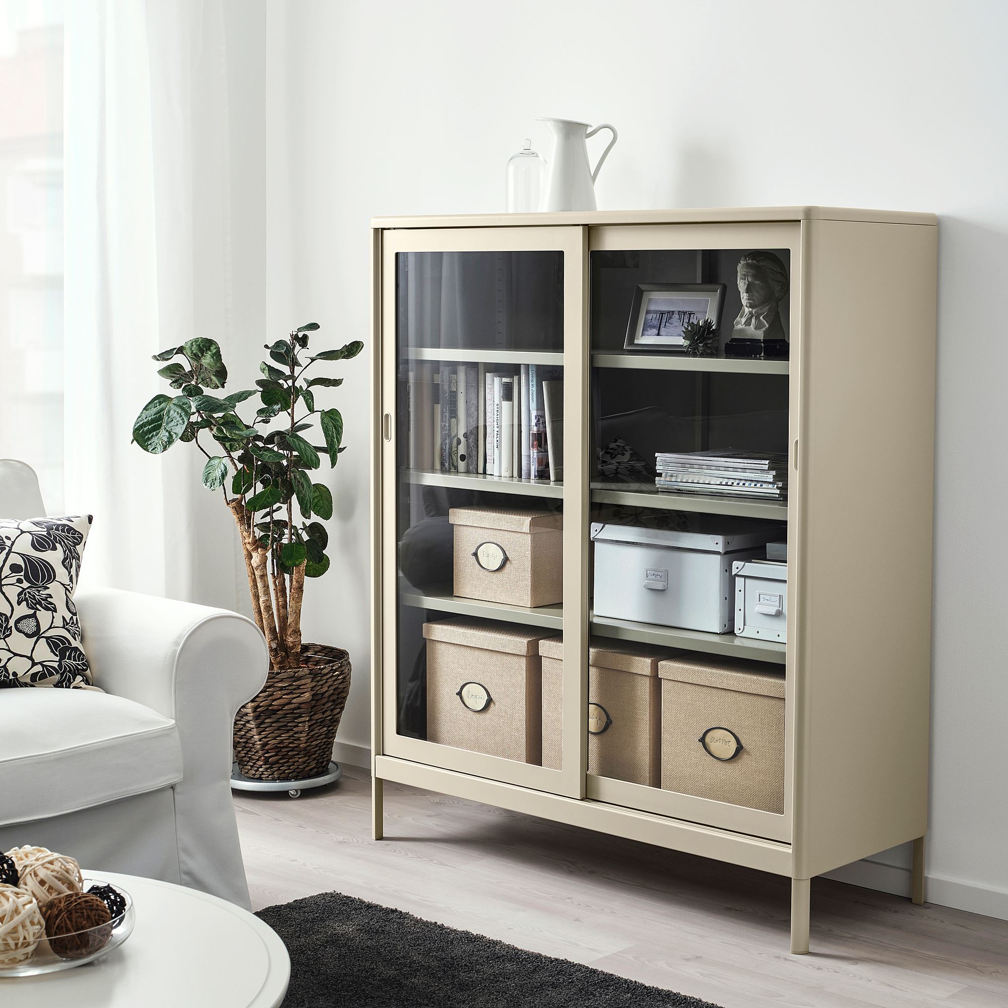 Kutu KALLAX raf ile mükemmel uyumludur.