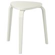 Kırık beyaz ahşap tabure, dayanıklılık ve doğal ahşap dokusunun parlamasını sağlamak için hem boyanmış hem de cilalanmıştır.