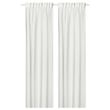 PALPLJUNGMAL perdeler, ışığı nazikçe dağıtan ve dingin bir sakinlik ve mahremiyet hissi yaratan şeffaf ve dökümlü bir kumaş üzerinde beyaz üzerine beyaz kabartmalı ince bir desenle minimalist bir çekiciliğe sahiptir.