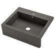 Koyu gri kuvars kompozit ön kısımlı bu eviye, asi bir çiftlik evi çekiciliği sunuyor. Derin tek hazneli tasarım, daha büyük tencere ve tavaları zemine su sıçratmadan temizlemeyi kolaylaştırır.