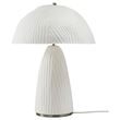 Kalıplanmış kağıt hamuru ve metal detaylara sahip abajur ve tabana sahip heykelsi bir masa lambası. Kum tepeleri organik yüzey deseninden esinlenen dalgalı yapı, lambayı açıkken olduğu kadar kapalıyken de güzel kılar.